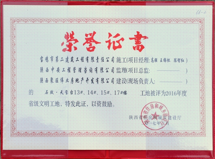 2017年度省級(jí)文明工地(石鼓﹒天璽臺(tái))