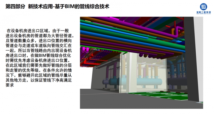 本次會議是針對房建項目的專項BIM技術交底會。BIM中心從基于場地BIM應用、木模BIM應用點、二次砌筑BIM應用點、后澆帶BIM應用點、屋面BIM應用點的方案優(yōu)化;基于永久性欄桿穿插施工的集成應用;基于應用BIM助力QC技術攻關、利用BIM技術進行坡度多跨度坡道標高建模模擬深化的技術創(chuàng)新;基于BIM的管線綜合技術的新技術應用等四個方面進行了詳細講解。