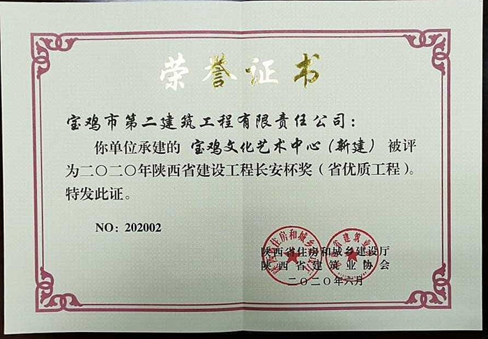 2020年陜西省建設工程長安杯獎(寶雞文化藝術中心)