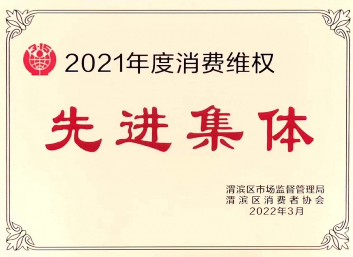 集團公司榮獲“2021年度消費維權先進集體”稱號