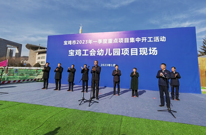 1月28日,寶雞市2023年一季度重點(diǎn)項目集中開工活動在集團(tuán)公司承建的寶雞市總工會幼兒園項目現(xiàn)場舉行,市委書記楊廣亭下達(dá)開工令,市長王勇、市人大常委會主任景耀平、市政協(xié)主席劉榮賢、市委副書記段小龍參加活動。市委常委、常務(wù)副市長賈珉亮主持開工活動。市人大常委會副主任、市總工會主席陳小平介紹項目情況。