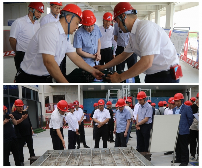 觀摩現(xiàn)場(chǎng)以視頻、展板、實(shí)體、樣板等多方位形式,對(duì)綠色建造、智能建造、關(guān)鍵施工技術(shù)共計(jì)10余項(xiàng)創(chuàng)新技術(shù)進(jìn)行集中展示,全面展示了裝配式鋼結(jié)構(gòu)體系、綠色建筑材料的應(yīng)用、文明施工管理現(xiàn)代化模式。